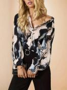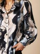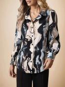 カジュアルスタイル 抽象プリント ボタンアップシャツ - ポリエステル、大理石模様、伸縮性なし、織物、洗濯機可、春/秋用、レディースファッション