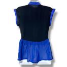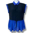 ウエスト部分がブルーのシフォンの切替になったバイカラーペプラムシャツ