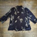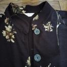 ダークブラウンの花柄デザインで、日本製の上質なシャツです。