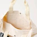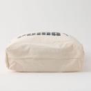 ビッグロゴのグラフィックで表現したシンプルなコットントートバッグ。小物の整理に便利なポケットを内側に装備。B4書類サイズまで収納可。中身が見られないよう、開口部にはホックを使用。ハンドルとショルダーベルトで両方使える2WAY仕様。