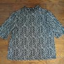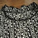 黒と白の花柄が特徴のフリル付き五分袖チュニック。