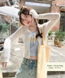 フロントはリボン結びで、通気性のある透かし編みデザインです