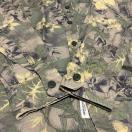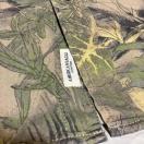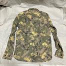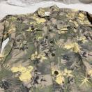 全体に施されたボタニカル柄(植物柄)が特徴で、落ち着いたグリーンやベージュ、イエロー系の色合いが絶妙に組み合わさっており、どんなスタイルにも合わせやすい一着です。カジュアルながらも上品な印象を与え、コーディネートの主役になること間違いなし。