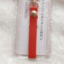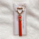 ハート型の金具と赤のレザー風ストラップのカチューシャ用キーホルダー。