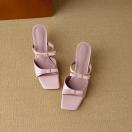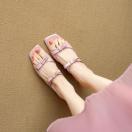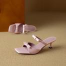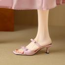ハラコレザーダブルリボン付き甲ストラップサンダルスリッパ全3色
