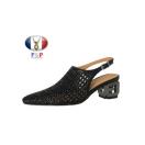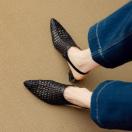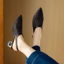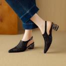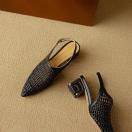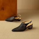 ポインテッドトゥ編み編みハラコレザーバックストラップサンダルスリッパ全2色
