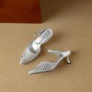 ポインテッドトゥ編みハラコレザーサンダルスリッパ全3色
