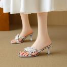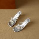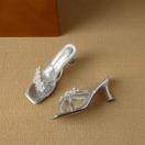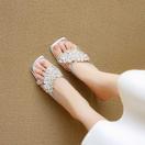 金属調ハラコレザーフロントキラキラビジュー付きサンダルスリッパ全2色