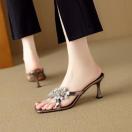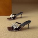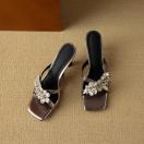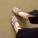 金属調ハラコレザーフロントキラキラビジュー付きサンダルスリッパ全2色
