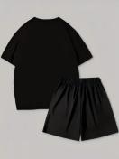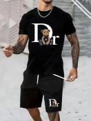 プリントパターンドラベアショートスリーブTシャツ、屋外レジャーメンズサマースーツラウンドネック+ショーツツーピースセットTシャツ