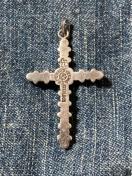 説明/メキシコ製のクロスです。イーグルマークがあるのでビンテージ品です。スターリングの刻印あり。ターコイズらしき石が埋め込まれているデザインです。サイズは縦全長4.2センチ横2.5センチくらい。使用に伴う傷や汚れ、くすみなどありますがまだまだお使いいただけます。写真にうまく写らなかった傷や汚れがある場合もありますのでご了承下さい。かっこいいですよ。おすすめ。