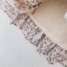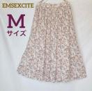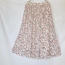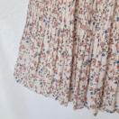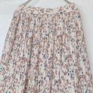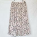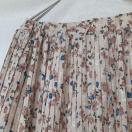 女性らしいフェミニンなライトベージュにピンクと青の花柄が施されたプリーツロングスカート。