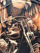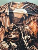 メンズカジュアルクルーネックTシャツ、3Dホワイトイーグル&モーターサイクルプリント、半袖、ポリエステル90%スパンデックス10%、ミディアムストレッチ、レギュラーフィット、ニット生地、90gsm - ストリートファッショントップ