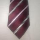 バーガンディのストライプデザインで、洗練された印象を与えるネクタイです。