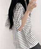 シンプルながらも洗練された印象を与える、定番ボーダー柄の半袖Tシャツです