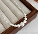 エレガントなパールのネックレス、46cmの長さで洗練されたデザイン。