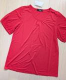 赤とオレンジの中間色の丸首半袖Tシャツ★