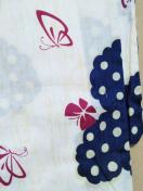 濃い青のドット柄の雲に蝶々がヒラヒラ舞っている浴衣になります。