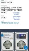 1万円硬貨 銀貨 1986年(昭和61年) NGC MS67