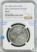 1986 (S61) NGC MS67 JAPAN Silver Hirohito 60th Anniv 10000 Yen Coin
