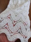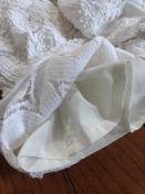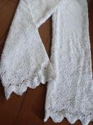 鍵編みレース的で、透け感がありますが、裏地付きで足見えはしません。