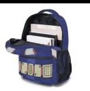 キャラクター風デザインの青いバックパック、調整可能なバックルと大容量の内部スペースを備えています。
