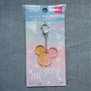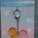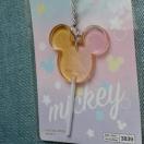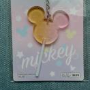 ミッキー型のアクリルキャンディキーホルダー、黄色とピンクのグラデーションが特徴。
