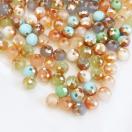 オペーク〜ミルキーカラーに半分オーロラメッキされたボタンカットガラスビーズです。