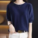 丸襟ニットひし形柄/ニットTシャツ通勤/シンプルニット無地