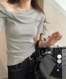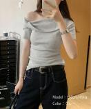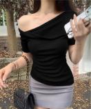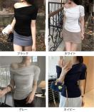 タイトトップス薄手/肩出しトップス大人/セクシーtシャツ夏