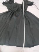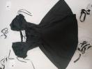 黒と白のフリル付きメイド服、サテン風素材、ヘッドバンドとリボン付き。