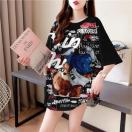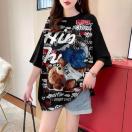 ロング丈キュートクマ柄半袖tシャツ
