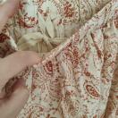 アイボリーのペイズリー柄フレアスカート、コットン100%で快適な着心地。