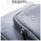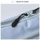 また、リップストップ生地に撥水加工を施し、前面ポケットは水に強いラバー風素材を使用しているため、少し濡れたらサッと拭き取れるのも特徴という。ショルダーストラップは長さ調節可能で、短めにして体にフィットさせることも、長めに提げることもできる。