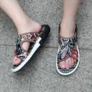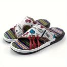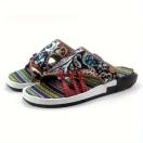 ヴィンテージ風民族デザイン メンズ&レディース サマーサンダル - ストライプ&ペイズリー柄 滑り止めラバーソール、通気性合成素材&ファブリックアッパー、カジュアルアウトドアシューズ、快適スリップオン、耐久性のあるフットウェア