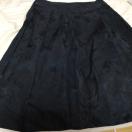 ニューヨーカー フレアシルエットのネイビーひざ丈スカート、花柄のデザインが特徴。