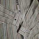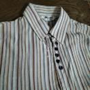 ストライプデザインの長袖シャツ、黒ボタン付き。
