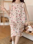 春夏秋用 女性向け シワになりにくい フローラルプリント スリーブレス ベスト チェストクッション付き ラウンドネック カジュアルラウンジウェア - 甘美なホームウェア