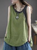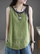 レナissanceにインスパイアされたオリーブグリーンのレディース無地タンクトップ - カジュアルなラウンドネック、ボタンデタイル、夏用のルーズフィット、通気性とスタイリッシュ、レディースタンクトップ