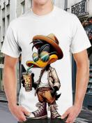 男性漫画パターンプリントTシャツ-ゆったりとカジュアルなストリートスタイル、四季快適なアウトドアスポーツと毎日の服、機械洗浄ニュートラルスタイル、トレンドキャラクターデザイン、快適な服
