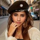 レディース ヴィンテージ ブリティッシュ ベレー ハット バックルデコレーション付き - ダンスパーティー&映画テーマ用 通気性八角形キャップ 春夏秋カジュアルトラベルアクセサリー イベントヘッドウェア ノンエラスティック ヘッドギア