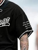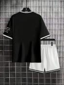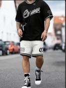 メンズ アウトフィット シカゴグラフィックプリント カジュアル クルーネック 半袖Tシャツ&ショーツ 2点セット 夏 アウトドア用