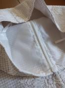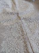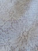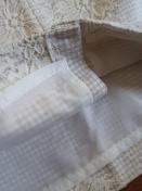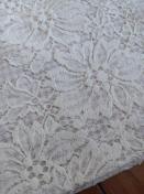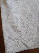 淡い薄いベージュと白のチェック、ベース生地に花模様のレース。