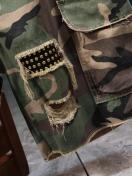 メンズ カモフラージュカーゴショーツ スパンコールパッチ付き カジュアル 快適コットン ストリートウェア 洗濯機可