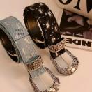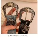 ヴィンテージスタイルのベルト、レトロな彫刻されたピンバックル、刺繍のリベットのディテール、パネル - ビーチ、夜の出会い、週末のカジュアル、祝祭の機会に適した多用途アクセサリー - 綿製のワンサイズデニムのエステティックなベルト(1個)