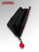ファスナー部分にウッドビーズとポンポンの飾り付き。