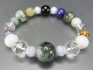 水晶に緑色のトルマリンやアクチノライトが内包されたパワーストーンです。