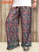 アジアンなペーズリー植物柄のゆるめパンツです。