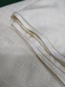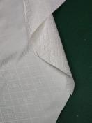 親の縫製工場時代からの保管品。和装品の縫製をやっていた時期があり、そのときの余り布です。これの使途についてはよくわかりませんが、画像から余裕ある判断・納得のできる方がご利用ください。素材は生成り木綿です。中厚地ではないと思いますが、少し厚みがあります。