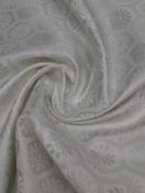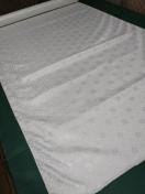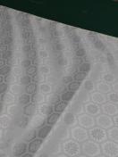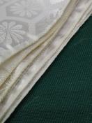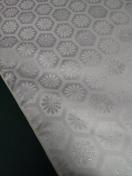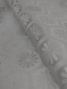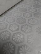 親の縫製工場時代からの保管品。和装品の縫製をやっていた時期があり、そのときの余り布です。これの使途についてはよくわかりませんが、画像から余裕ある判断・納得のできる方がご利用ください。素材は生成り木綿に銀ラメ使いです。中厚地ではないと思いますが、少し厚みがあります。